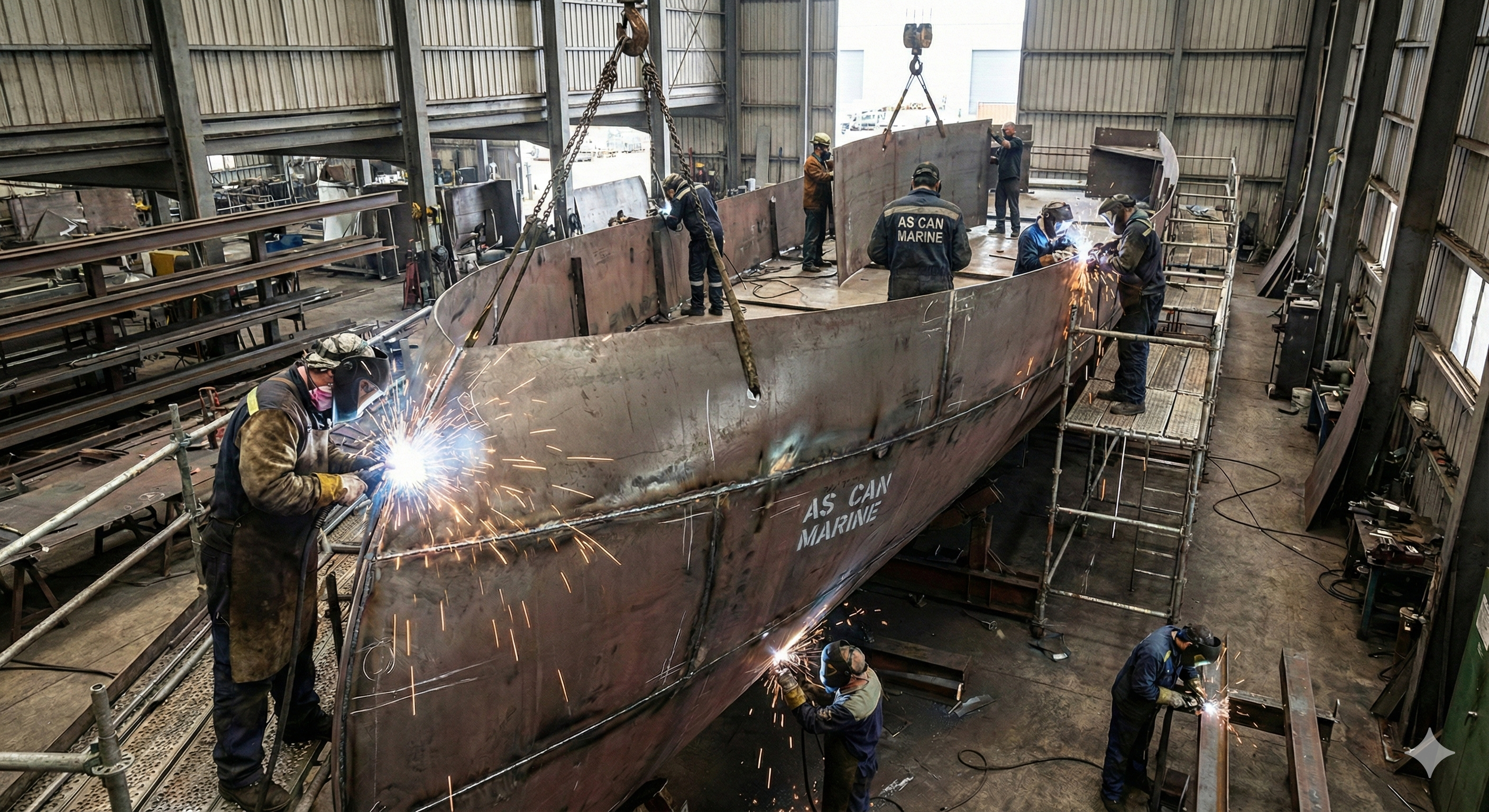 Yüksek mukavemetli gemi çeliği (Grade A / AH36) ile uzun menzilli yat imalatı.